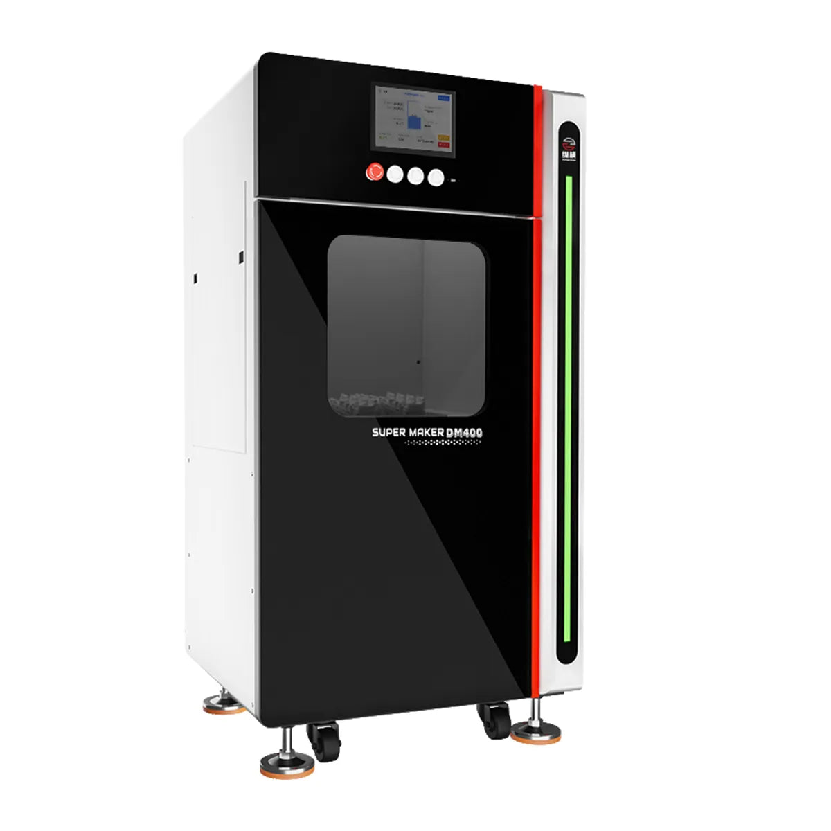 Supermaker DM400 delivers an expanded build volume and industrial-grade automation for large-scale batch manufacturing. With 100μm XY resolution and high-speed DLP projection, it ensures efficient production of detailed architectural models, custom orthopedic guides, large jewelry clusters, and functional end-use parts. Its modular auto-handling system supports 24/7 unattended operation, minimizing manual intervention while maximizing throughput. Engineered for demanding environments, the DM400 excels in medical, automotive, and service bureau applications where large-format printing and continuous production are critical.