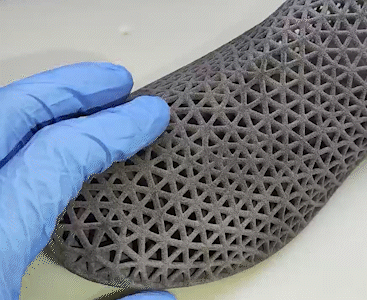 TPU-printed shoe sole mold with complex lattice design provides optimal cushioning and energy return. Excellent for footwear prototyping and ergonomic testing.
